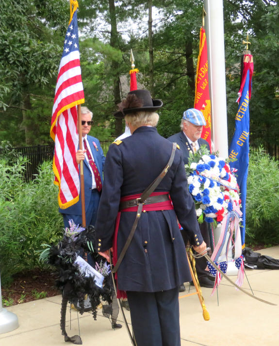 Turner Randy Baehr presents a wreath from the Francis Wilhelmi Camp #17, SUVCW, at the Grant Remembrance Ceremony at the U. S. Grant National Historic Site in south St. Louis County, MO, on July 19, 2025.